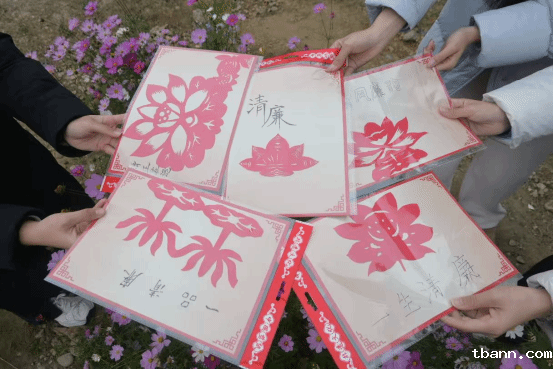 本次嘉年华精心设计了五大主题活动环节,巧妙地将廉洁理念转化为可感、可触、可参与的沉浸式体验。在足球场边,6名学生代表围绕“巧手塑廉形,匠心传廉意”主题潜心创作,白、绿、黑、粉等基础色黏土在指尖流转,莲花、劲竹、“廉”字等具象化作品成型,每一件作品都凝聚着对廉洁精神的独特诠释。同学们手持剪刀,剪出了不同视角的莲花,通过剪纸艺术转化为可感、可学的视觉符号,彩纸翻飞间,一幅幅寓意“清正奉公”的剪纸作品跃然纸上。