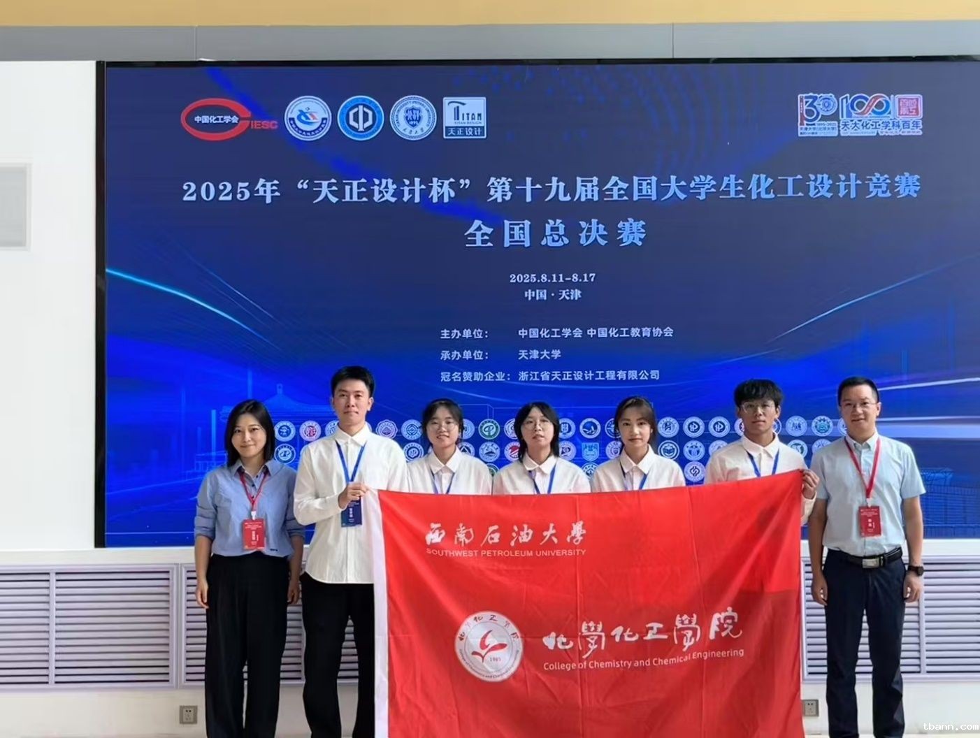 8月11日至17日,由中国化工学会、中国化工教育协会主办的第十九届全国大学生化工设计竞赛全国总决赛在天津大学举行。我校化工院“砜向标”团队获得全国总决赛一等奖。 本届竞赛于今年3月启动。全国479所高校的4337支队伍报名参赛,参赛人数超2.1万人。经七个赛区激烈角逐,共有73支队伍晋级全国总决赛,其中西南赛区(四川、重庆、贵州、云南、西藏)8支。 “砜向标”团队由化学工程与工艺专业2022级的刘苗、常学硕、张远通、李宏洁、张又丹五名同学组成,在刘慧敏、余亚兰、汪芳、李敏等老师的指导下,历经省赛、赛区赛各个阶段的激烈角逐,以西南赛区特等奖(第二名)的成绩晋级全国总决赛。 团队围绕“中石化镇海炼化有限公司3万吨/年二甲基亚砜生产项目”这一赛题,对传统的二甲基亚砜工艺进行了创新设计,体现出我校化工学子将所学课本知识综合运用于工程设计的良好能力,得到了专家评委的一致认可。 全国大学生化工设计竞赛于2018年进入“普通高校学科竞赛排行榜”,是化工类学科中规模最大、水平最高、覆盖最广、影响最强的本科生学科竞赛,纳入中国石油校园招聘“优才”范围。化学化工学院已连续15年组队参加,均取得优异成绩。
