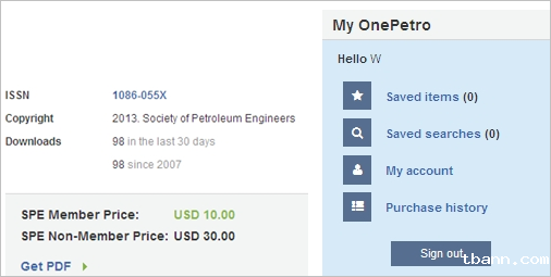 6.检索到相关文献后,点击文章篇名,点击打开页面中的“Get PDF” 即可打开文章,或鼠标右键保存(目前NACE标准暂不能下载)。每次检索利用该数据库完毕,请务必点“sign out” 注销,不然会影响你个人账号以后的正常使用。请遵守版权规则,切勿使用多线程下载工具。