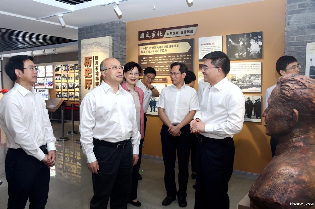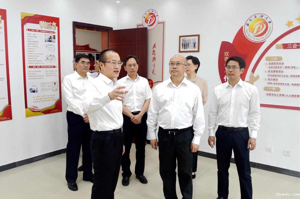 王正谱一行首先来到校史馆,详细询问了学校历史发展、“双一流”建设等情况,了解了我校“为祖国加油,为民族争气”的深刻内涵。赵金洲汇报了学校六十多年来不忘兴油报国使命,砥砺奋进的办学历史、治学理念、人才培养、教学科研、服务社会、文化传承等情况,对学校入选国家首批“双一流”建设高校,工程学、化学学科先后进入ESI全球前1%行列等工作进行了介绍。