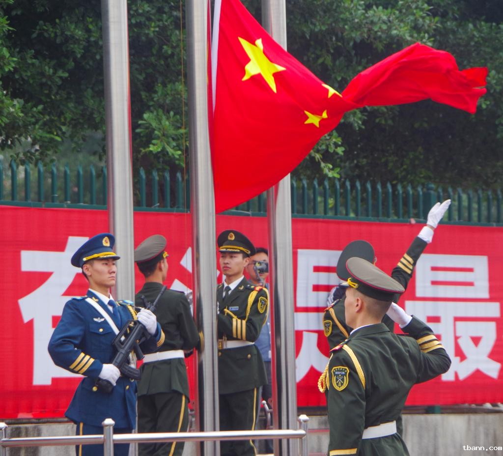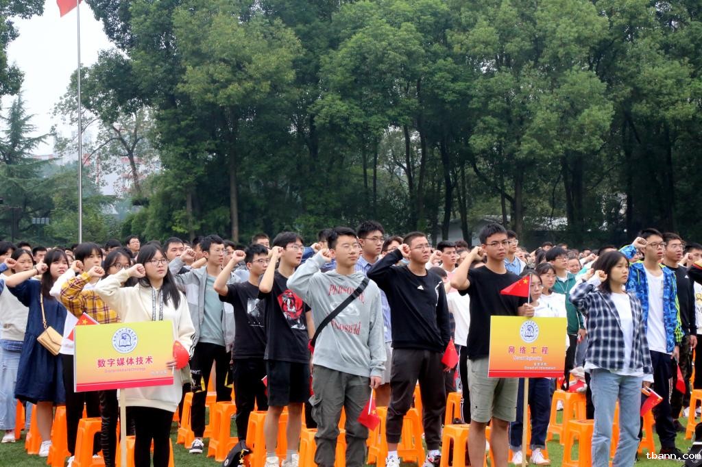 在庄严雄浑的国歌伴奏曲中,全场师生垂手肃立面向升旗台,高唱《中华人民共和国国歌》。一批年轻的青年学子站在鲜艳飘扬的五星红旗下,以歌声诉说对祖国的热爱和担当,抒发对大学生活的憧憬和向往。