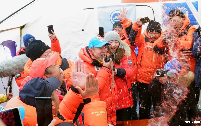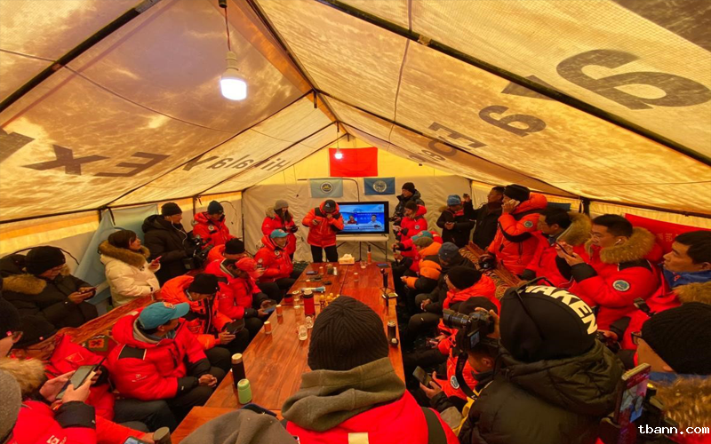 珠峰大本营指挥帐,国家登山队、国家测量队庆祝登顶成功