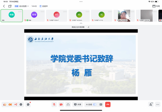 7月18日,理学院以线上会议形式召开2026届本科毕业生家长会。理学院党委书记杨雁、信息与计算科学专业教研室主任金检华、数学与应用数学专业教研室主任丁显峰、人工智能专业教研室主任周犁文及2026届毕业生辅导员周缘与家长们齐聚线上,围绕学生学业发展、就业深造规划及家校协同育人等内容展开深入交流。
