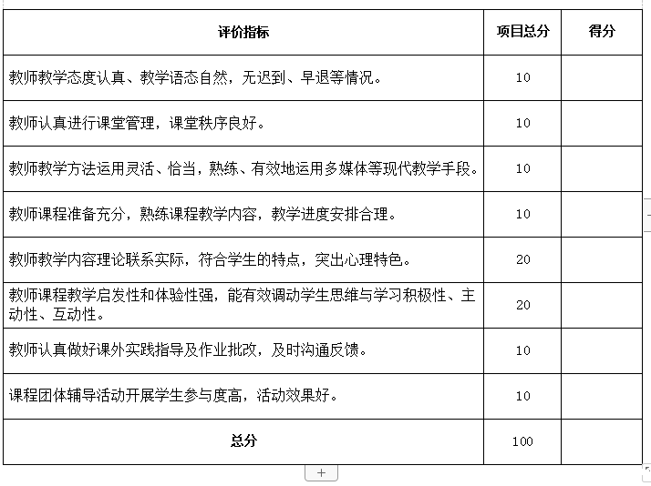 《大学生心理健康教育》课程教学学生评价表